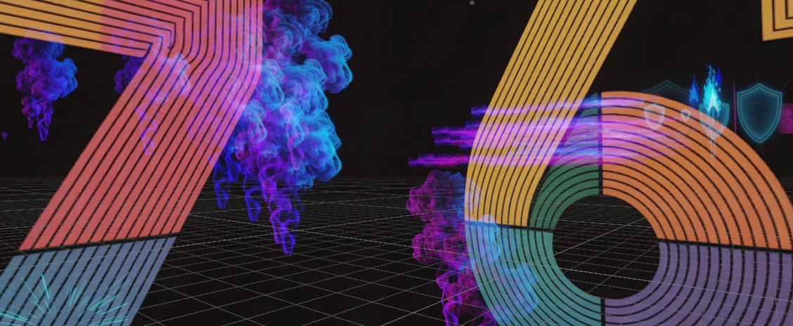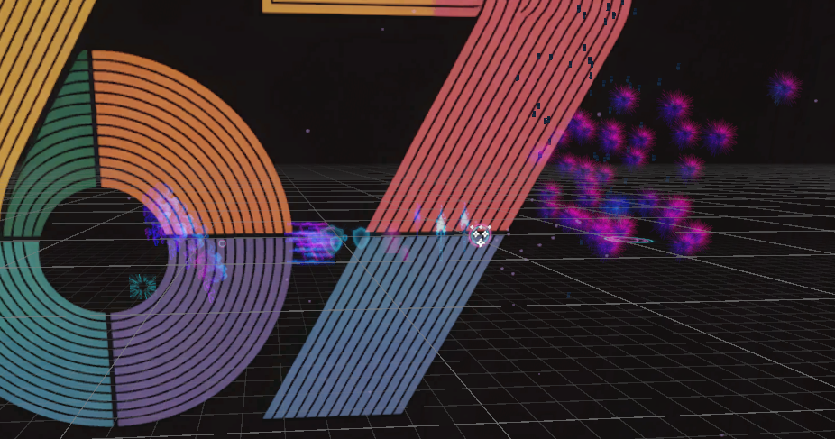 Neon color palette (blue, pink, purple)